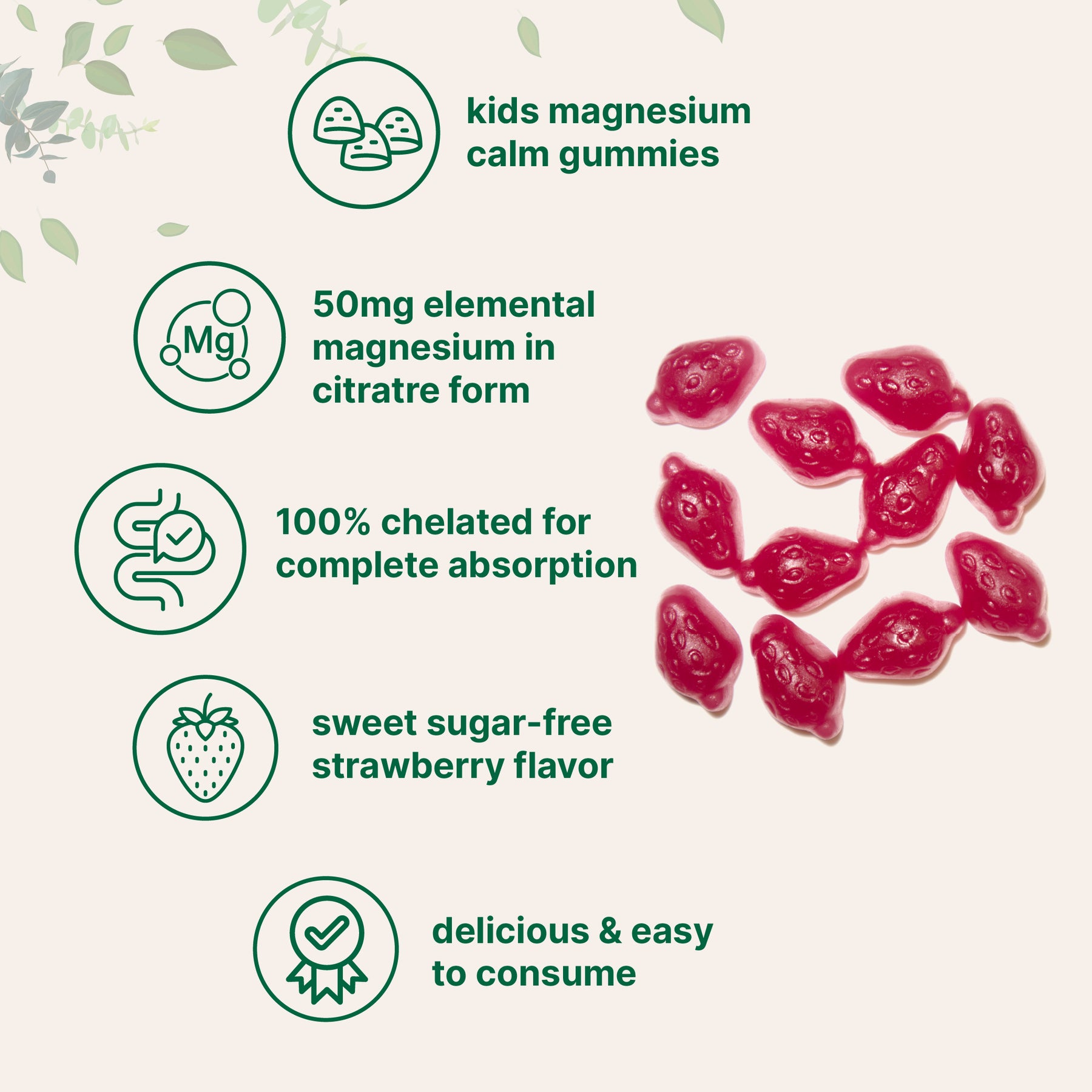 · Micro Ingredients offers kids magnesium calm gummies with a sweet strawberry flavor, sugar free and designed as a gentle way to support natural calmness, sleep, and overall healthy development.*