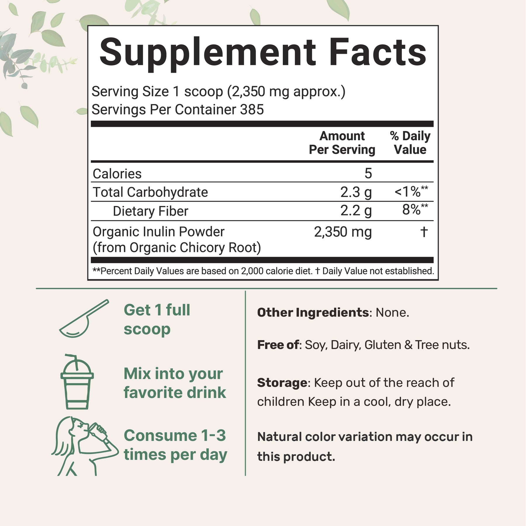 • Premium non-GMO inulin supplements. Free of soy, dairy, gluten, fillers, preservatives, artificial flavors, and tree nuts. 3rd party lab test to ensure a product that is safe, pure, and potent.
