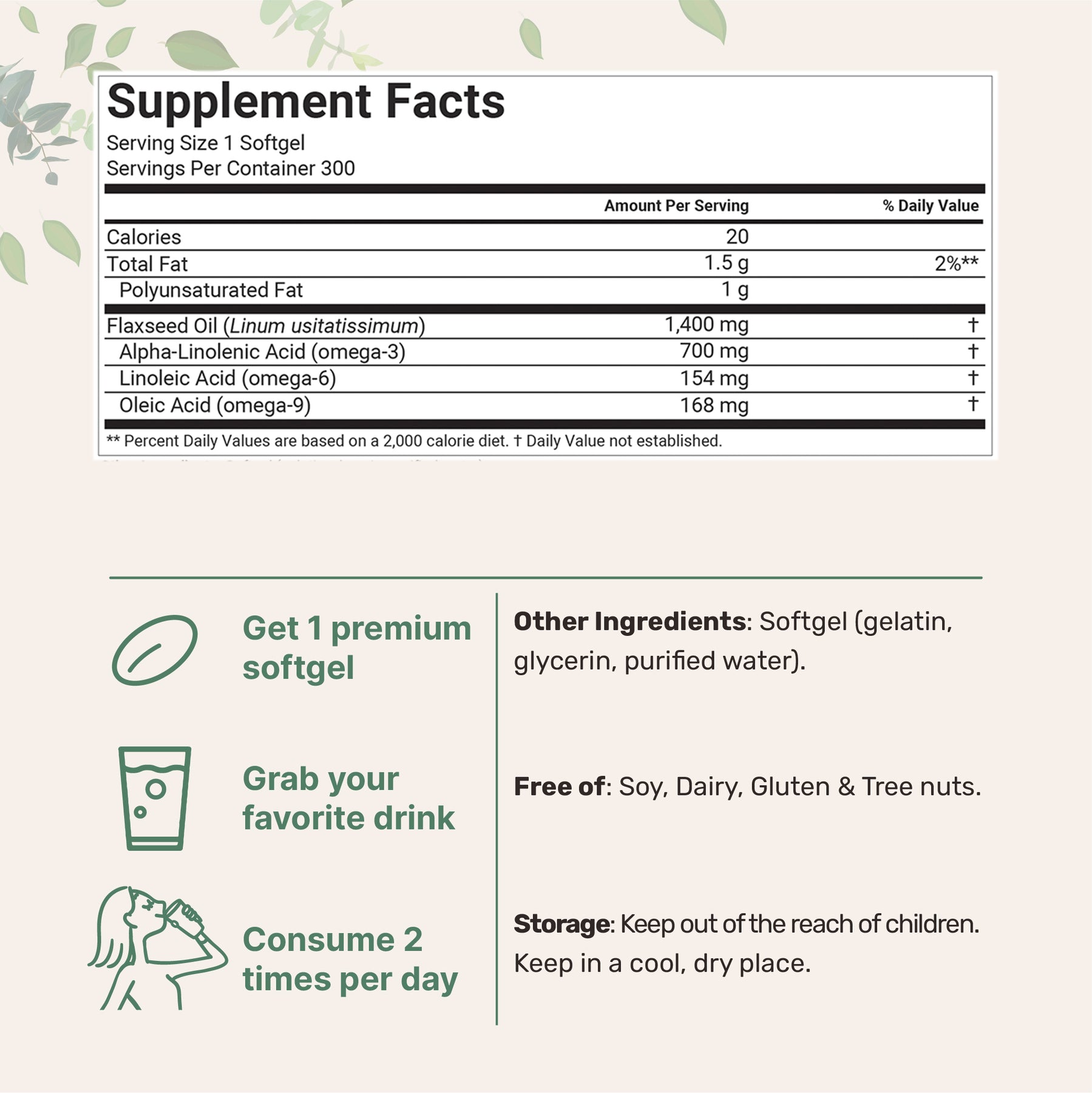 Micro Ingredients Flaxseed Oil 1400MG, 300 Counts (300 Days Supply), Cold Pressed, No GMOs.