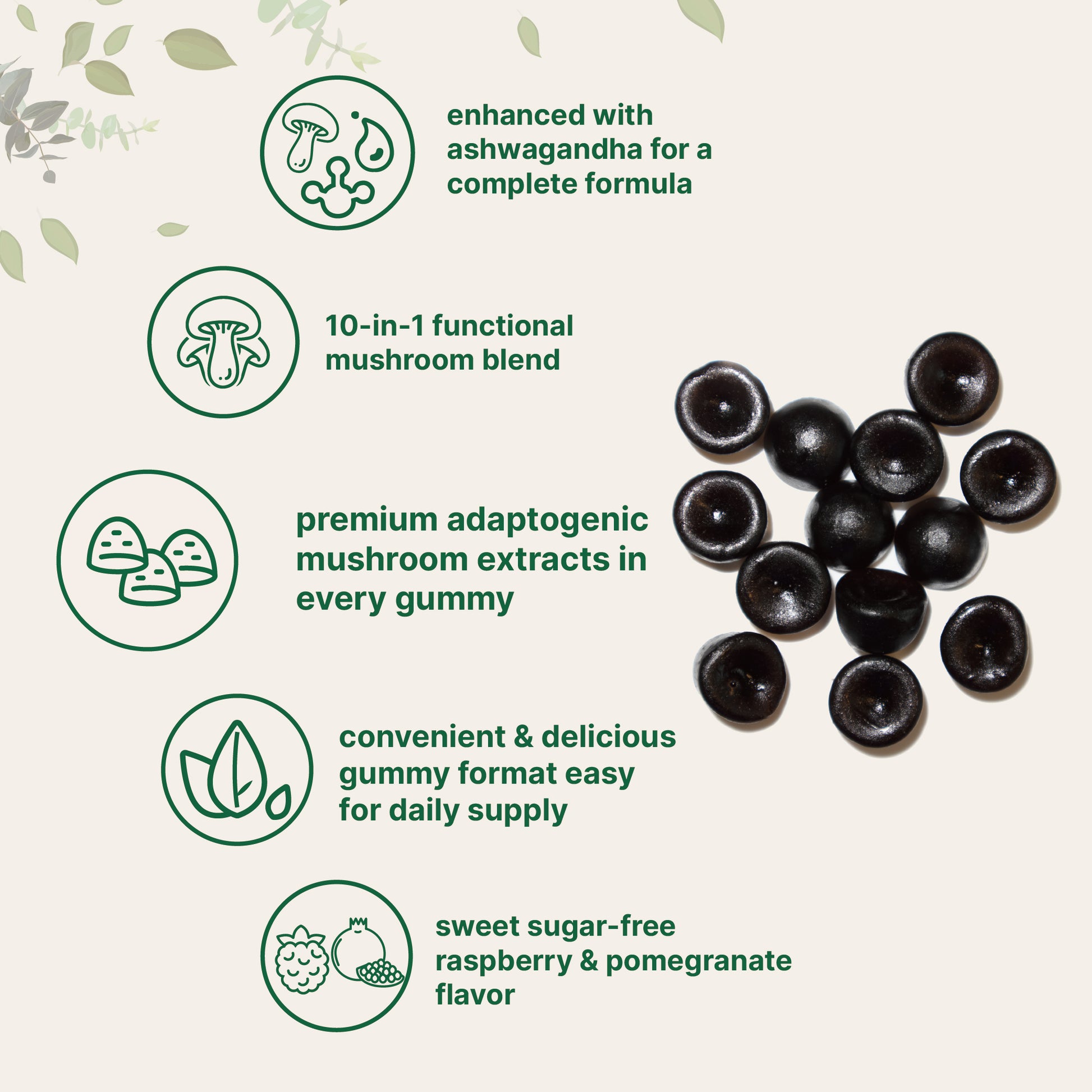 - Micro Ingredients offers mega mushroom gummies with a 10-in-1 functional mushroom formula enhanced with Ashwagandha. A comprehensive adaptogenic blend designed for daily wellness and balance.