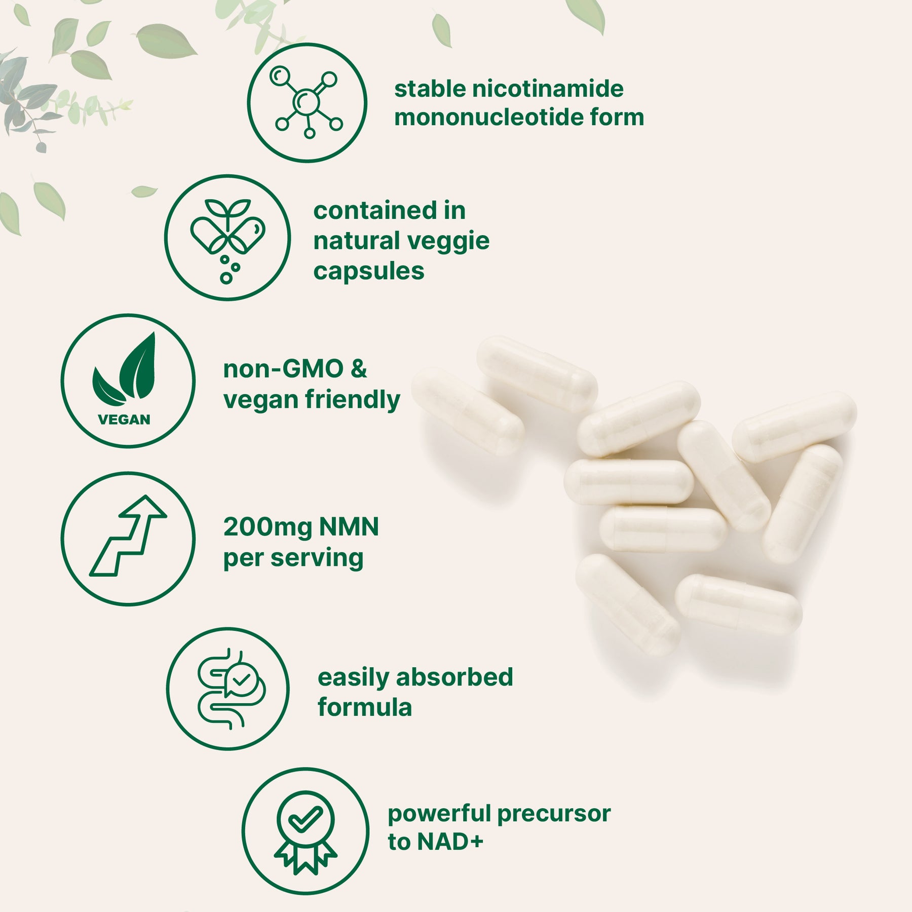 Easily Absorbed Stable Form: As NMN levels naturally decline with age, this compound has become an area of growing interest for its powerful benefits, efficient absorption, and stable structure.