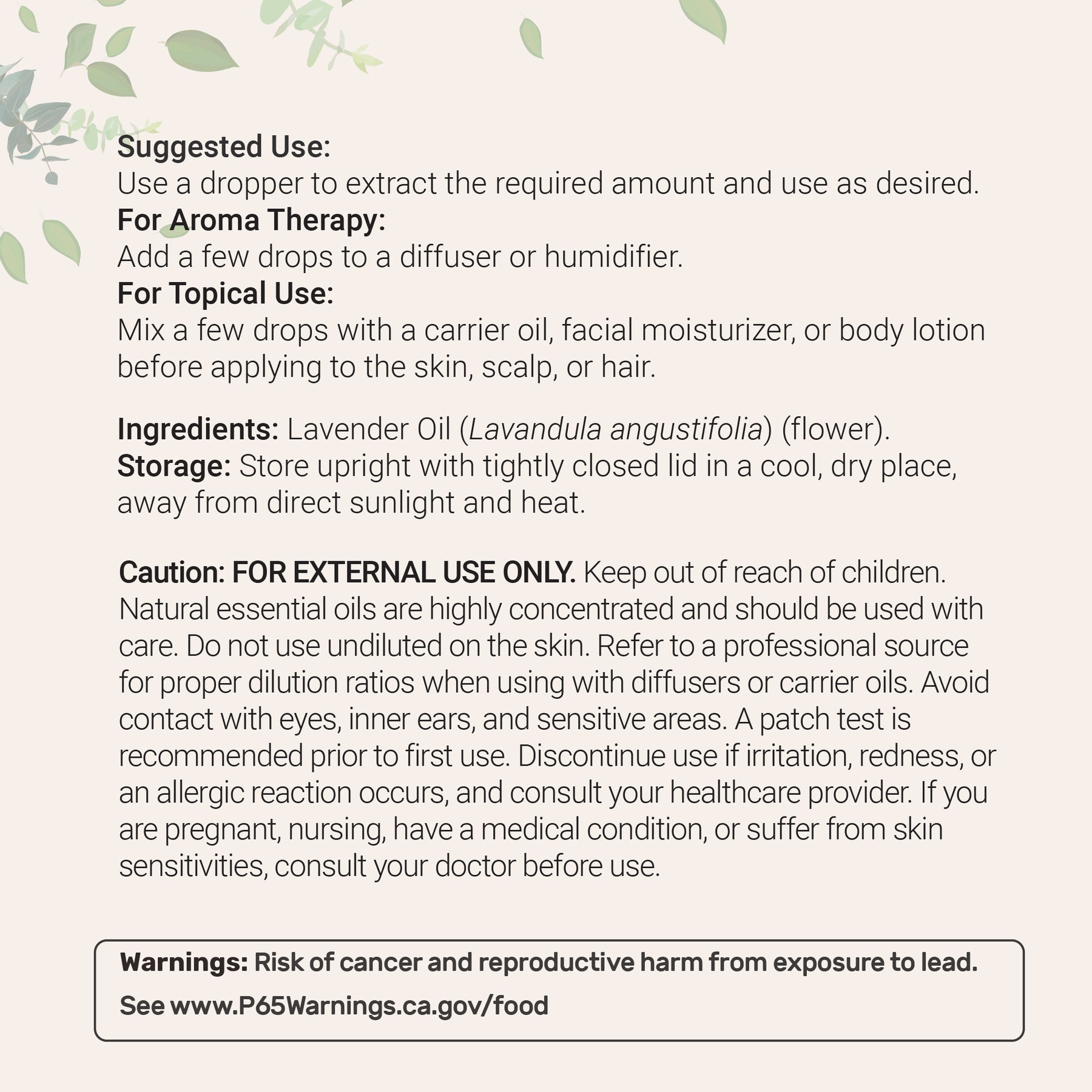 Pure Essential Oil: Crafted with clean ingredients and no fillers or synthetic additives, this versatile essential oil captures the natural simplicity and purity of lavender for everyday enjoyment.
