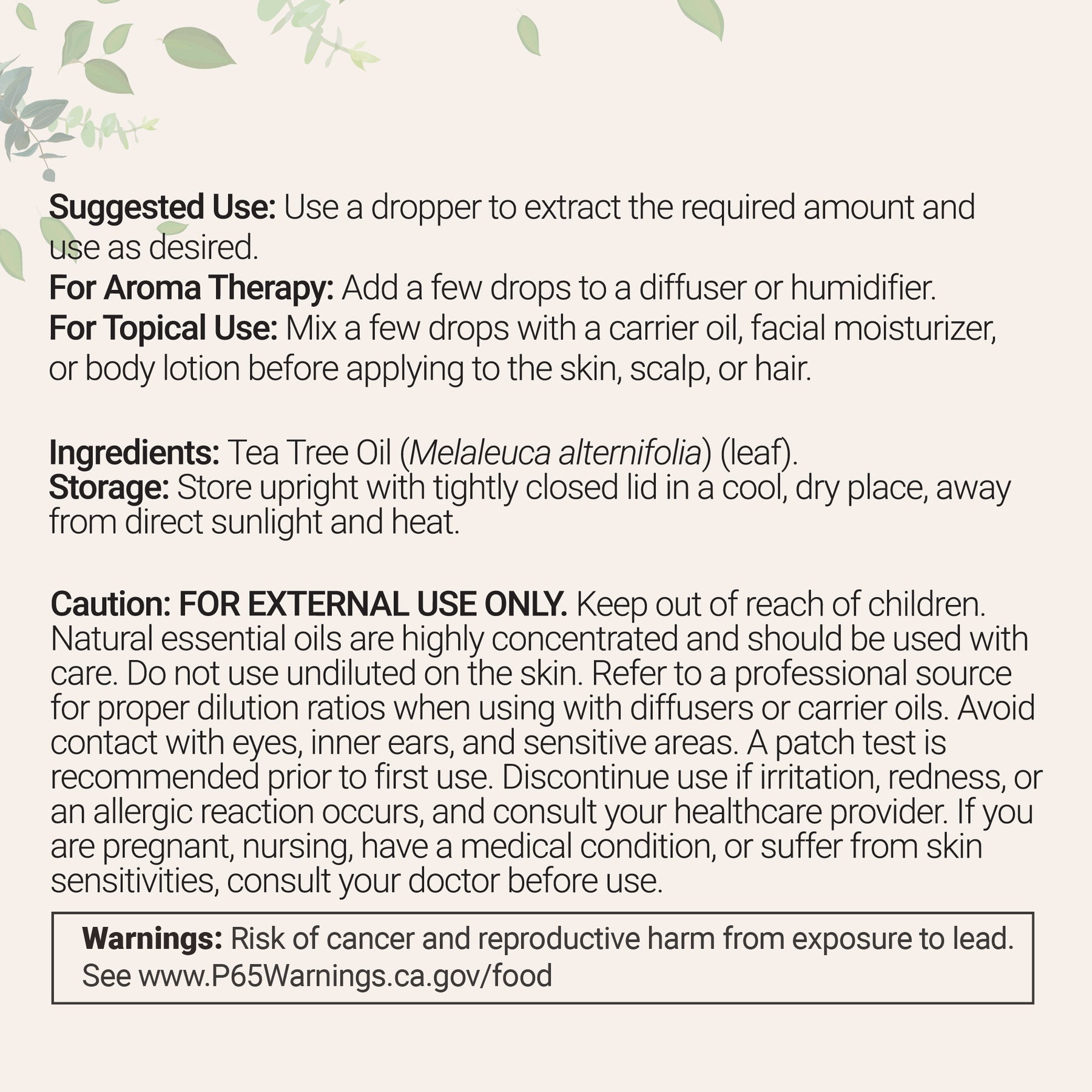 Micro Ingredients offers premium-grade Pure Tea Tree Essential Oil derived from freshly harvested Melaleuca alternifolia leaves, featuring a naturally purifying and refreshing herbal aroma.