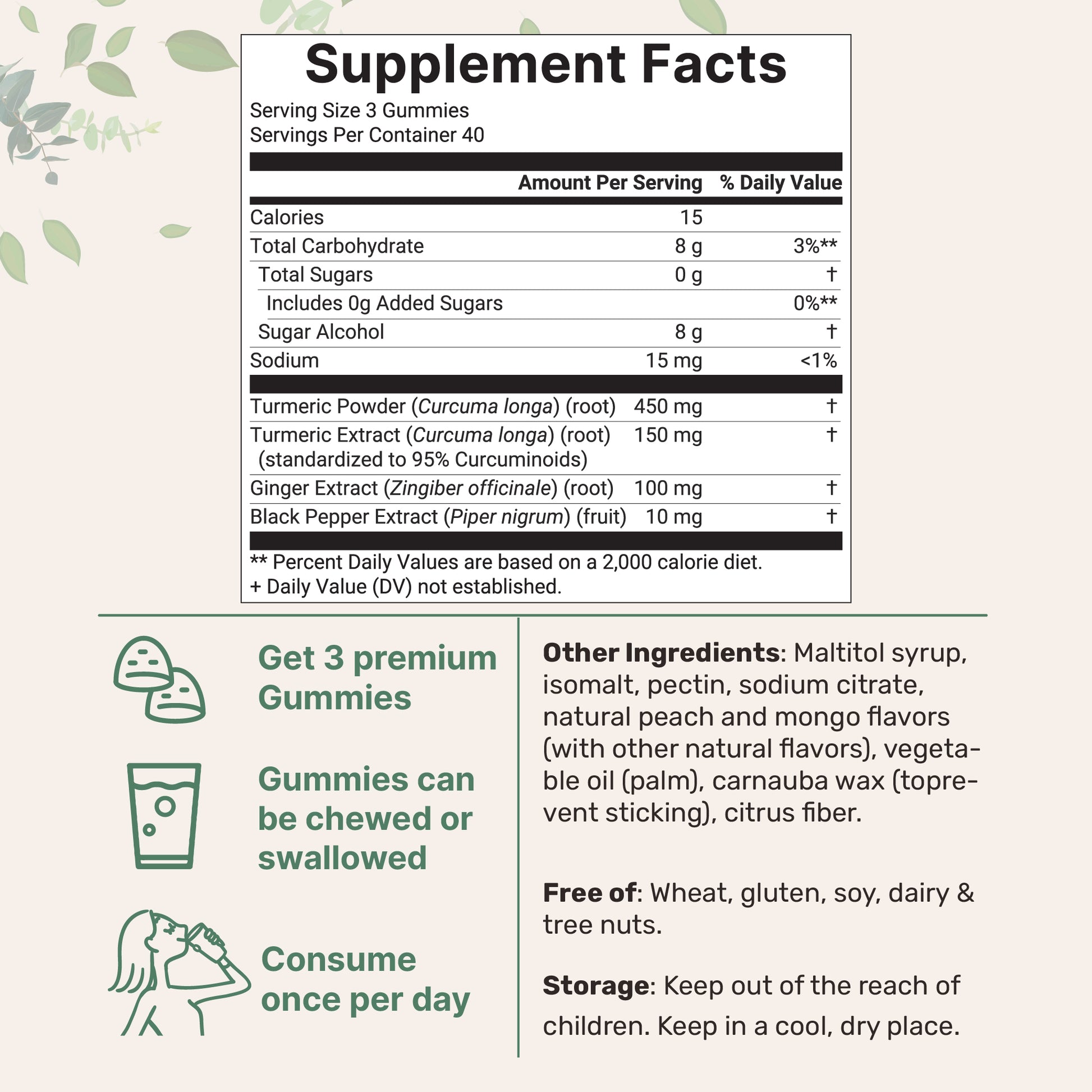 2 Gummies Daily – Extra Strength Turmeric, Curcumin & Ginger Blend