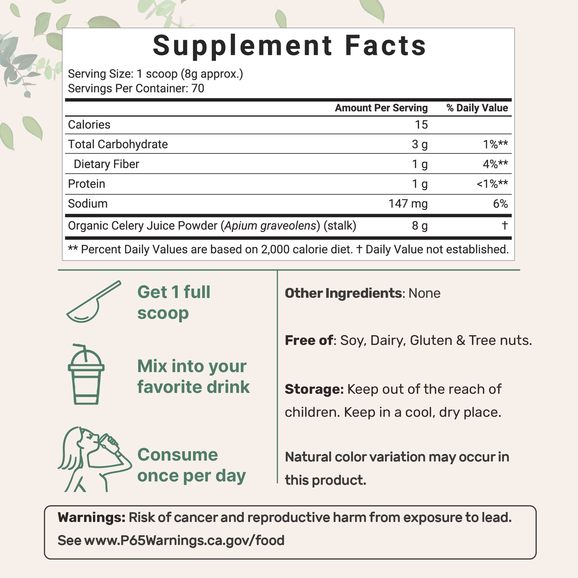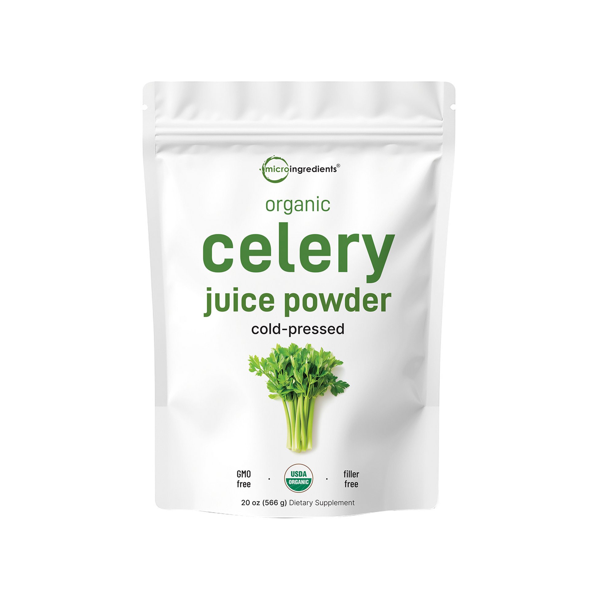 - Micro Ingredients organic celery powder (celery juice powder organic), 20 ounce (1.25 pound), 70 serving, cold pressed, non-GMO and vegan.