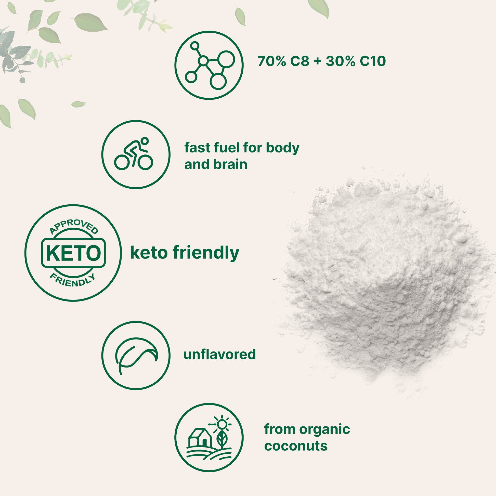 - Powdered Advantage: Higher concentration, quicker absorption, and gentler on the stomach than traditional MCT oil