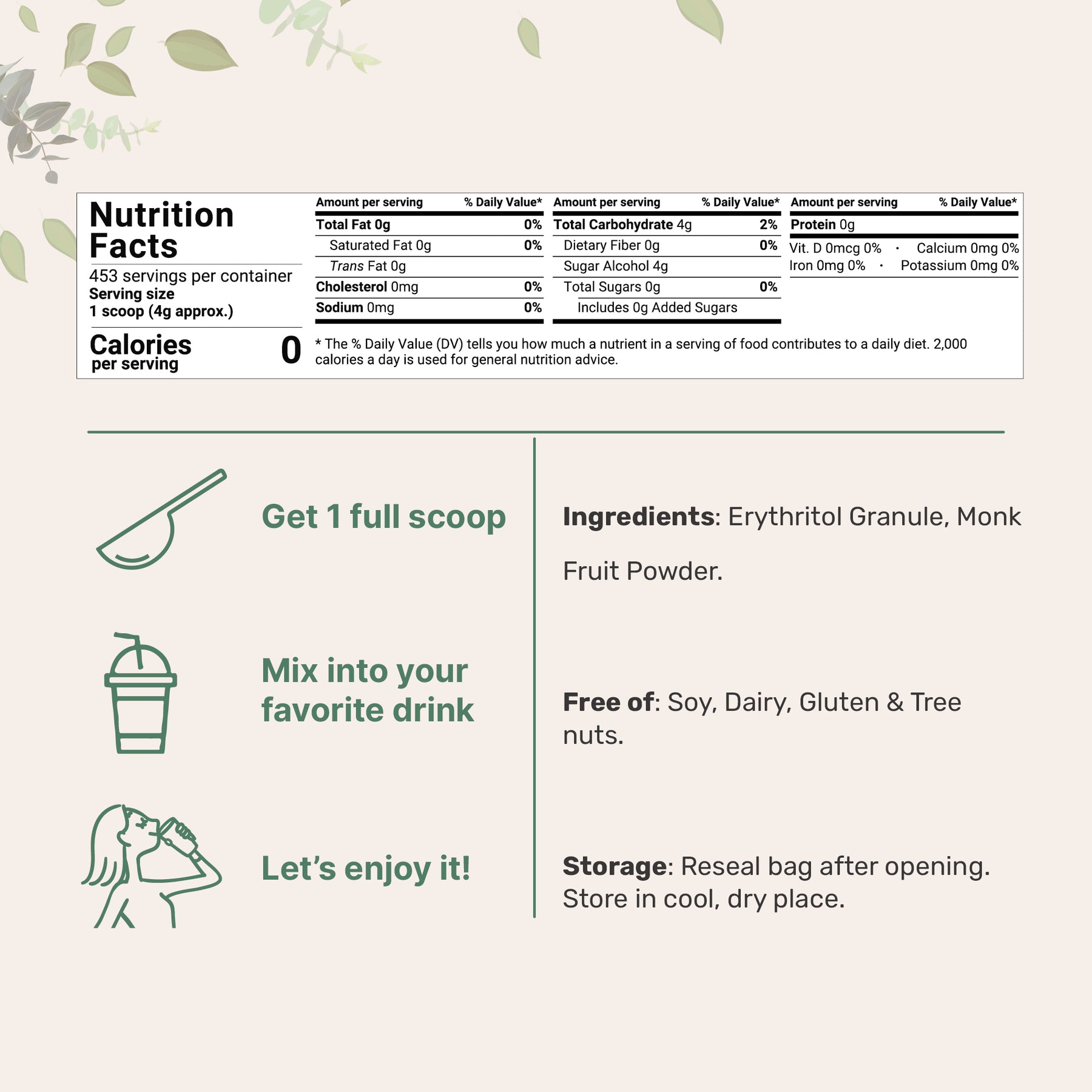 Great-tasting alternative for sugar, zero calories, premium monk fruit brown sugar substitute.