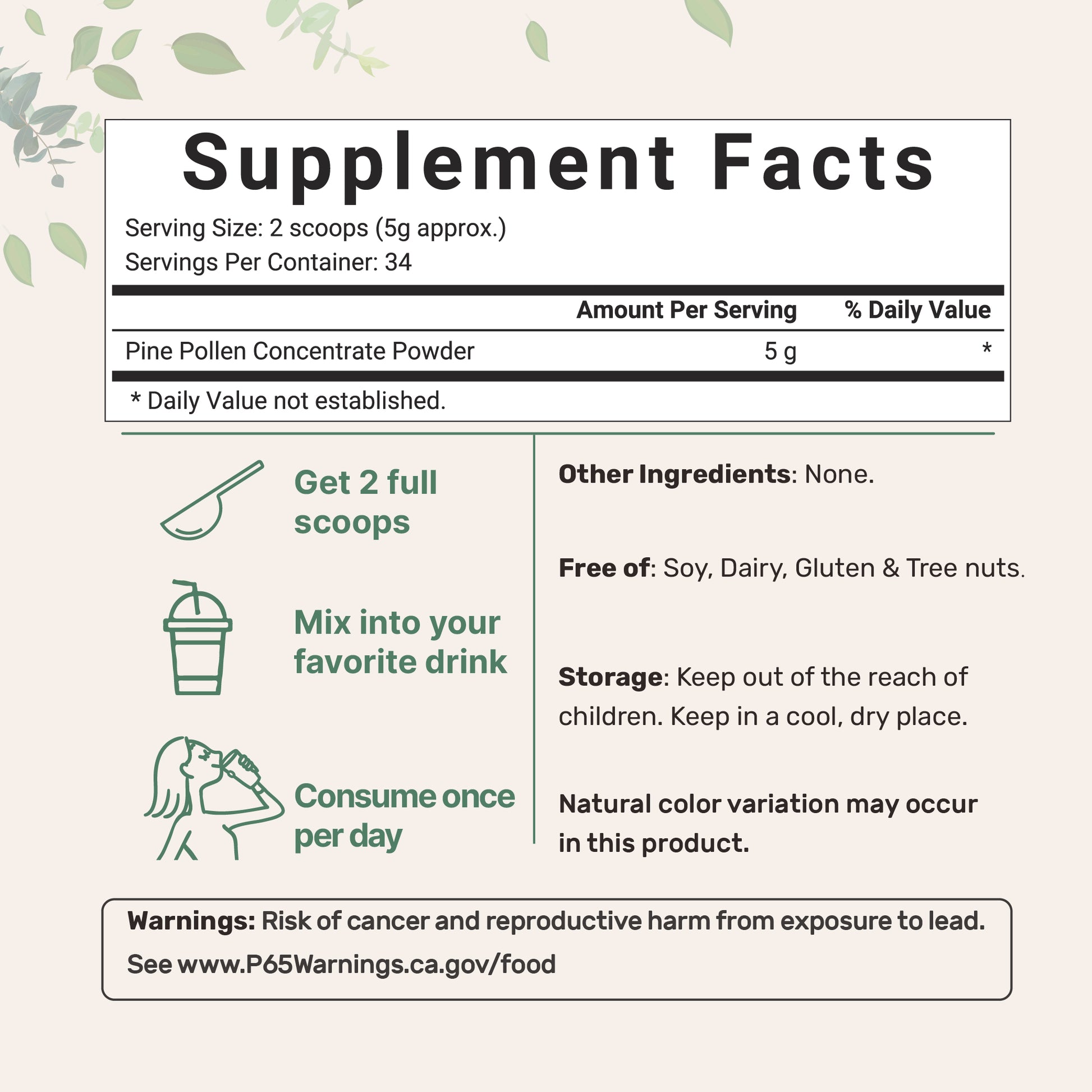 - Pure Pine Pollen Concentrate Powder, 6 Ounce, No GMOs and Vegan Friendly.