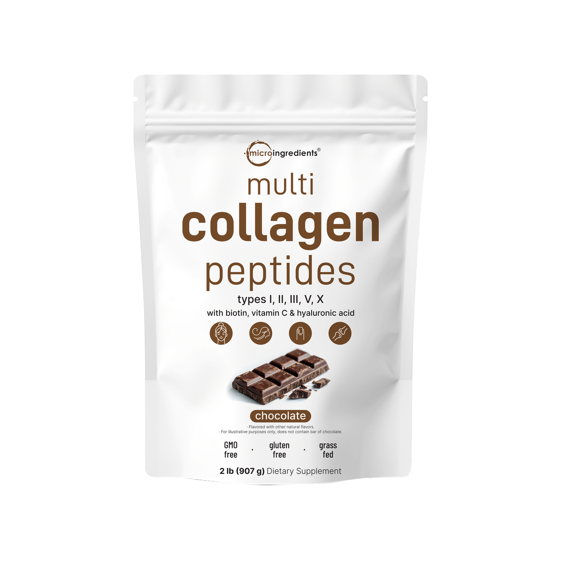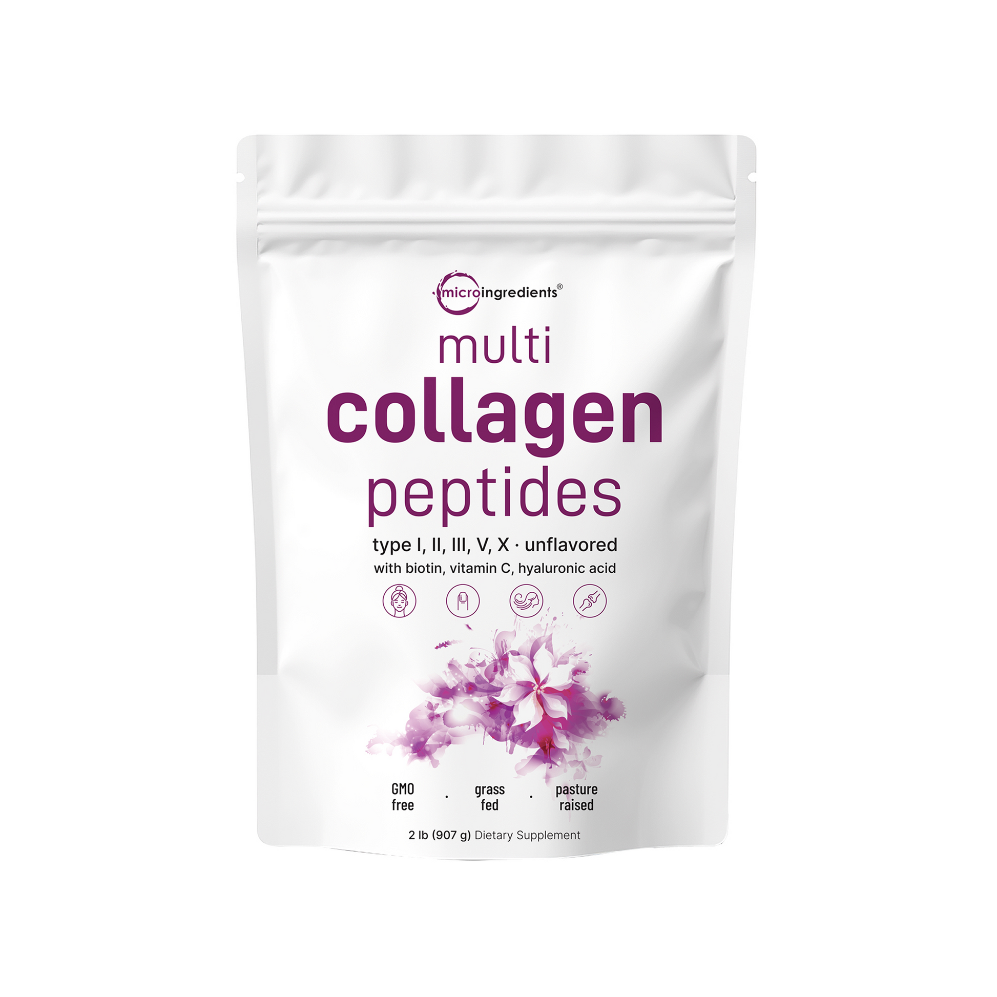 Micro Ingredients Multi Collagen Peptides Powder - Hydrolyzed Protein Peptides (Type I,II,III,V,X) with Hyaluronic Acid, Biotin & Vitamin C Unflavored
